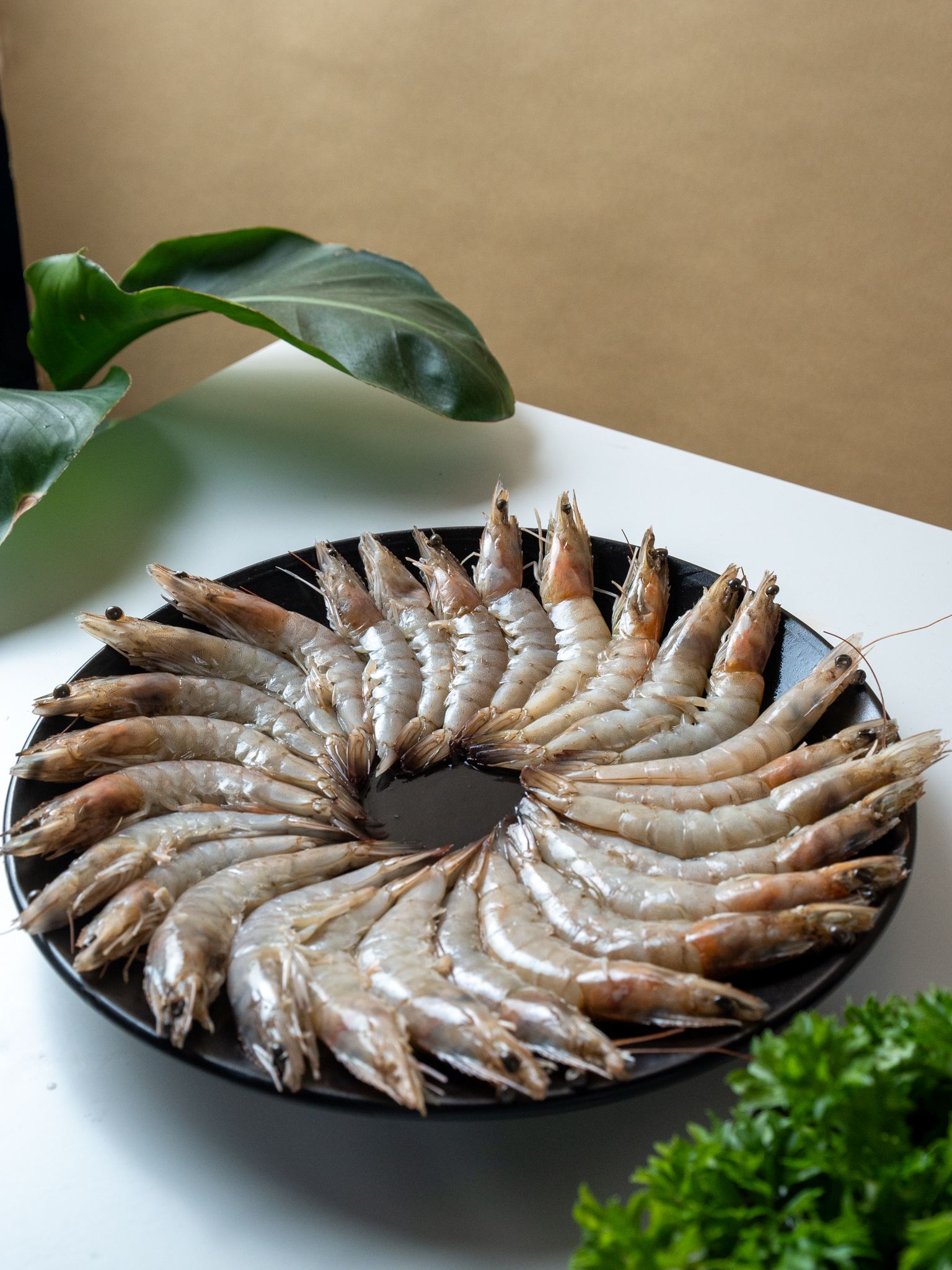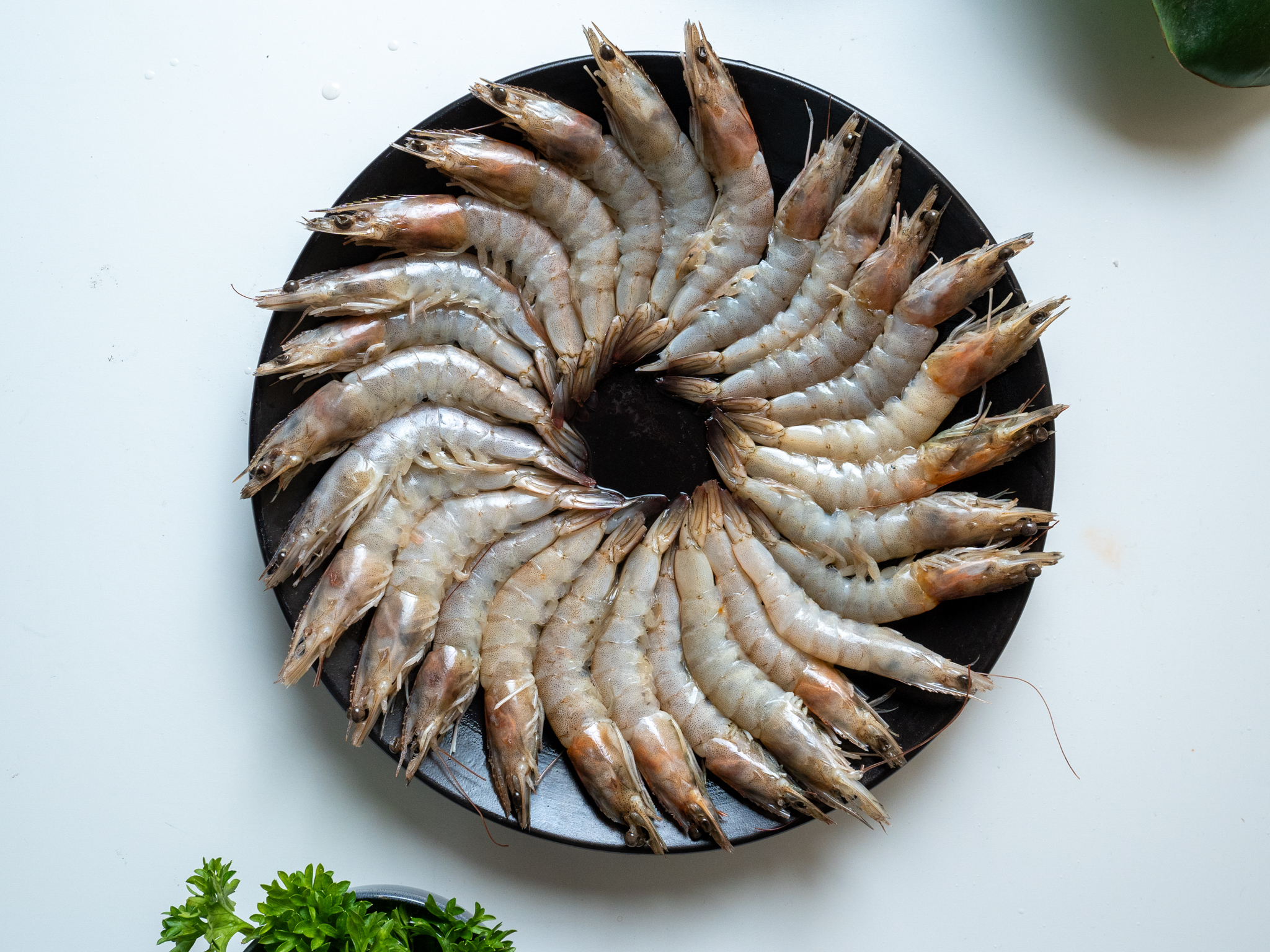 Shrimp are processed with strategic belly cuts to prevent curling and mechanically stretched to achieve a straight presentation.